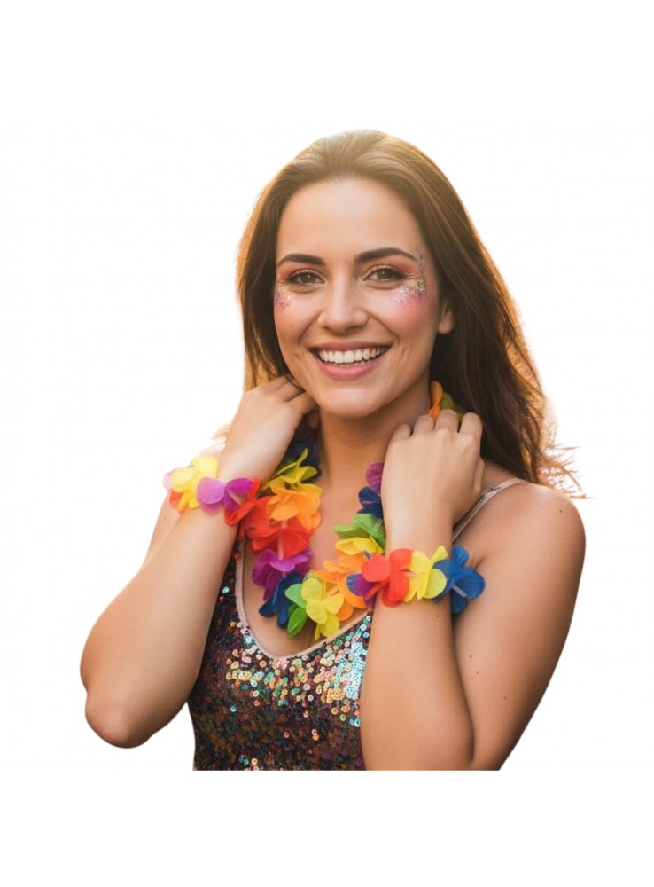 Adereço de Festa composto por 2 pulseiras e 1 gargantilha (não é colar) estilo Havaiano Tradicional.