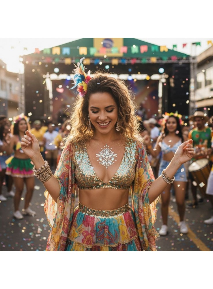 Design pensado para destacar a área do colo, proporcionando brilho e glamour em festas, carnaval e eventos temáticos.