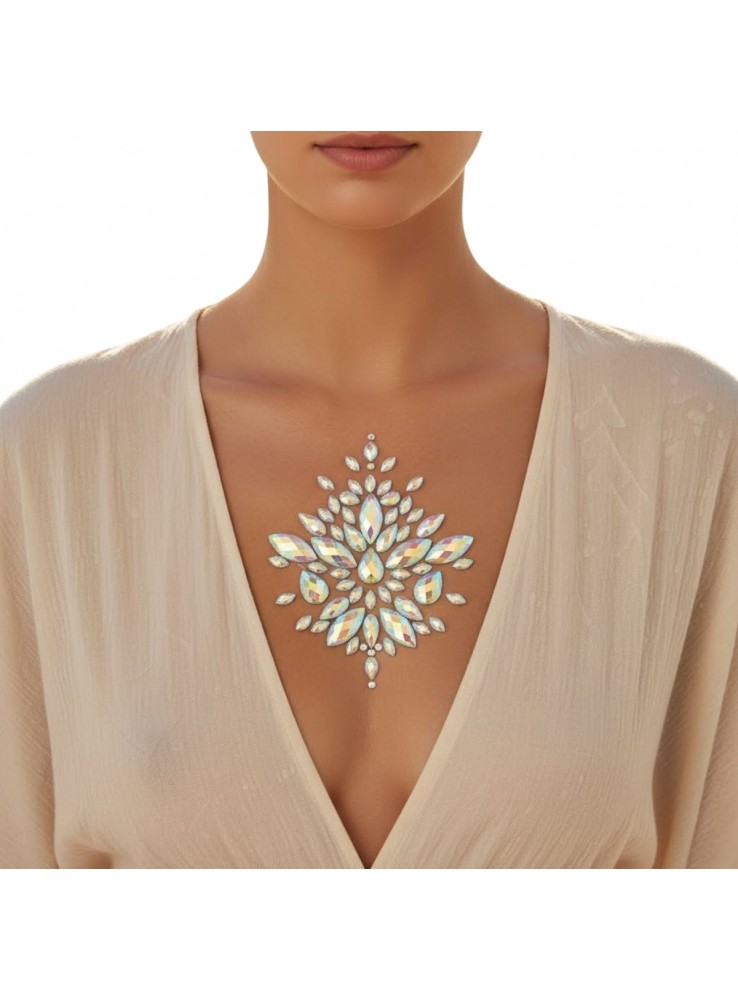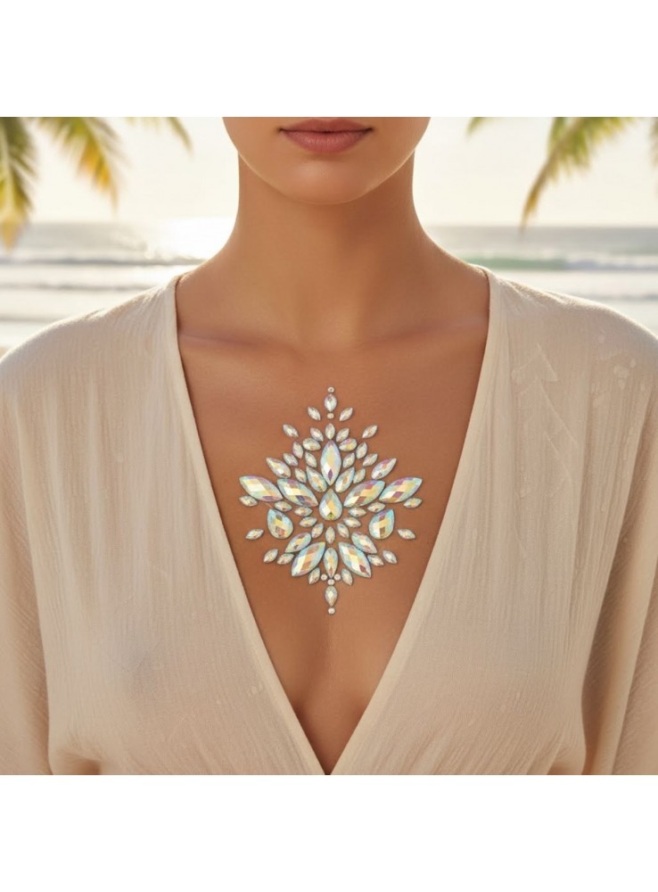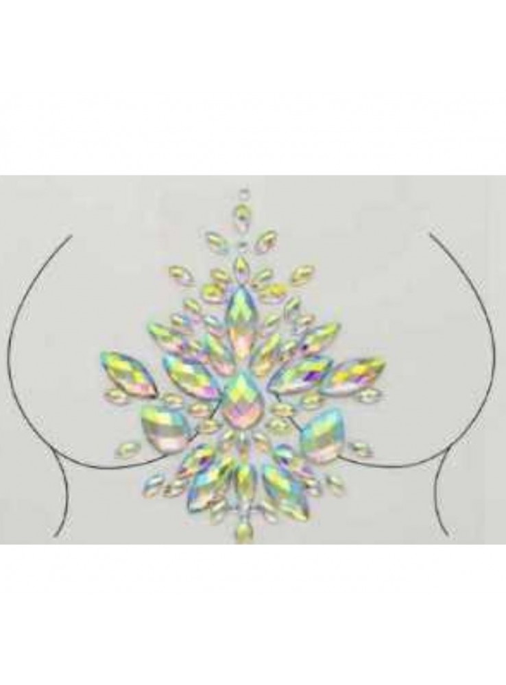 Adesivo decorativo com pedras de strass furta-cor, para aplicação no busto.