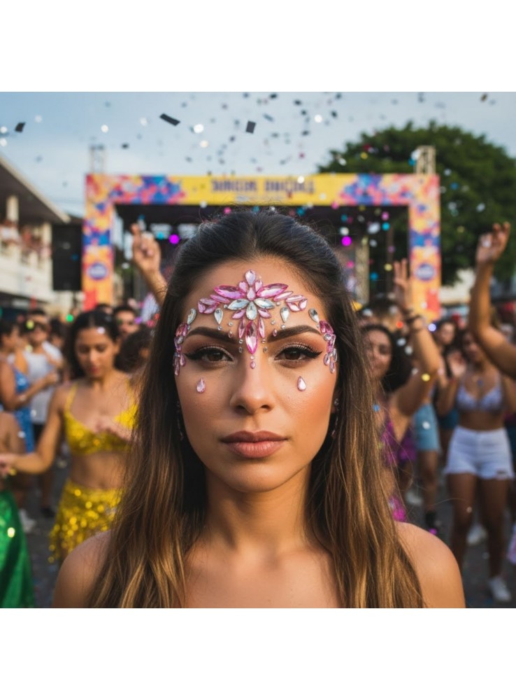 Design pensado para destacar a área dos olhos e testa, proporcionando brilho e glamour em festas, carnaval e eventos temáticos.