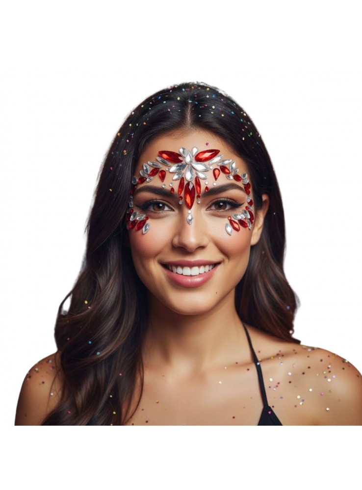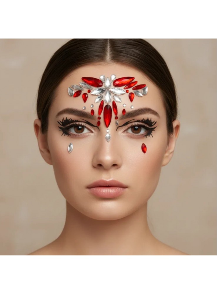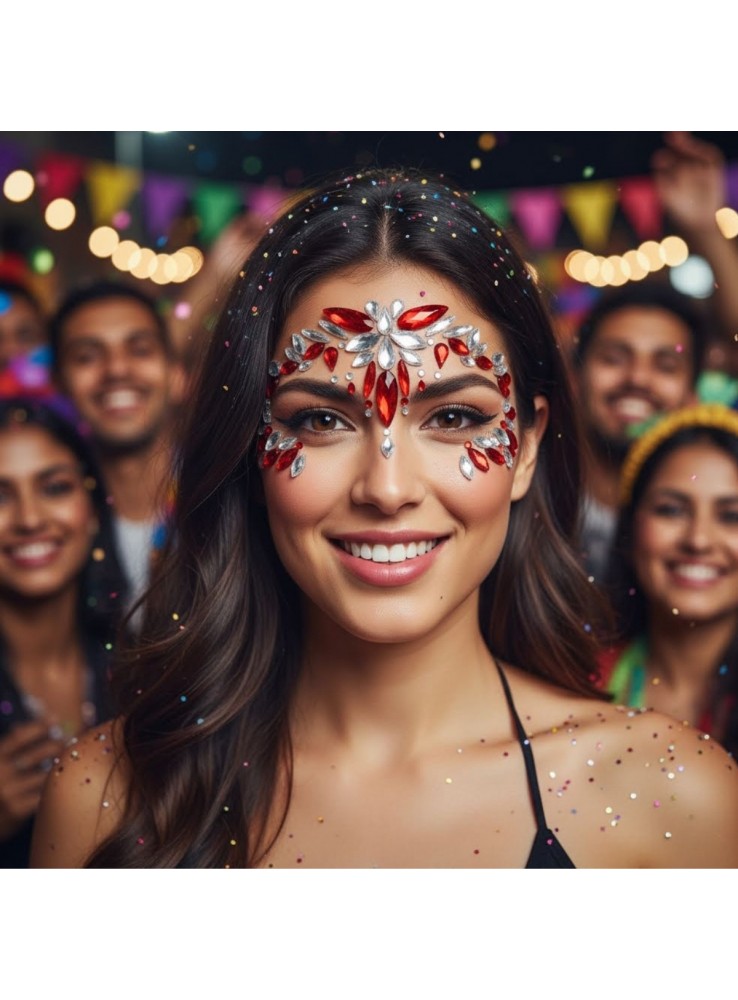 Adesivo decorativo com pedras de strass, ideal para aplicação no rosto.