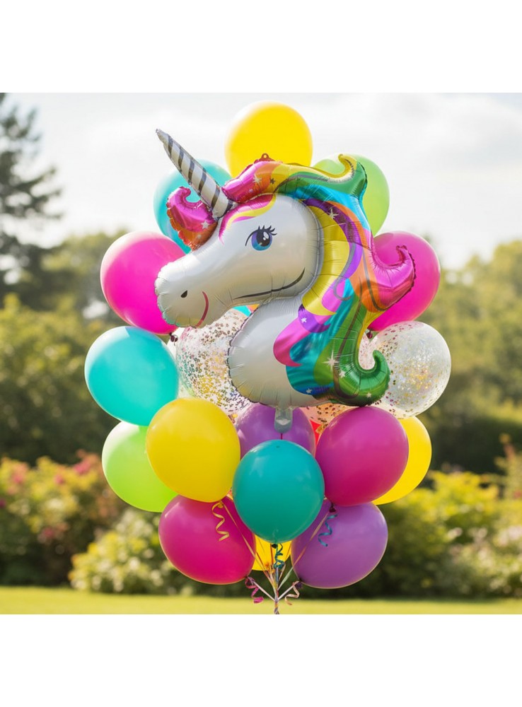 Balão Metalizado no formato de um Unicórnio Colorido.