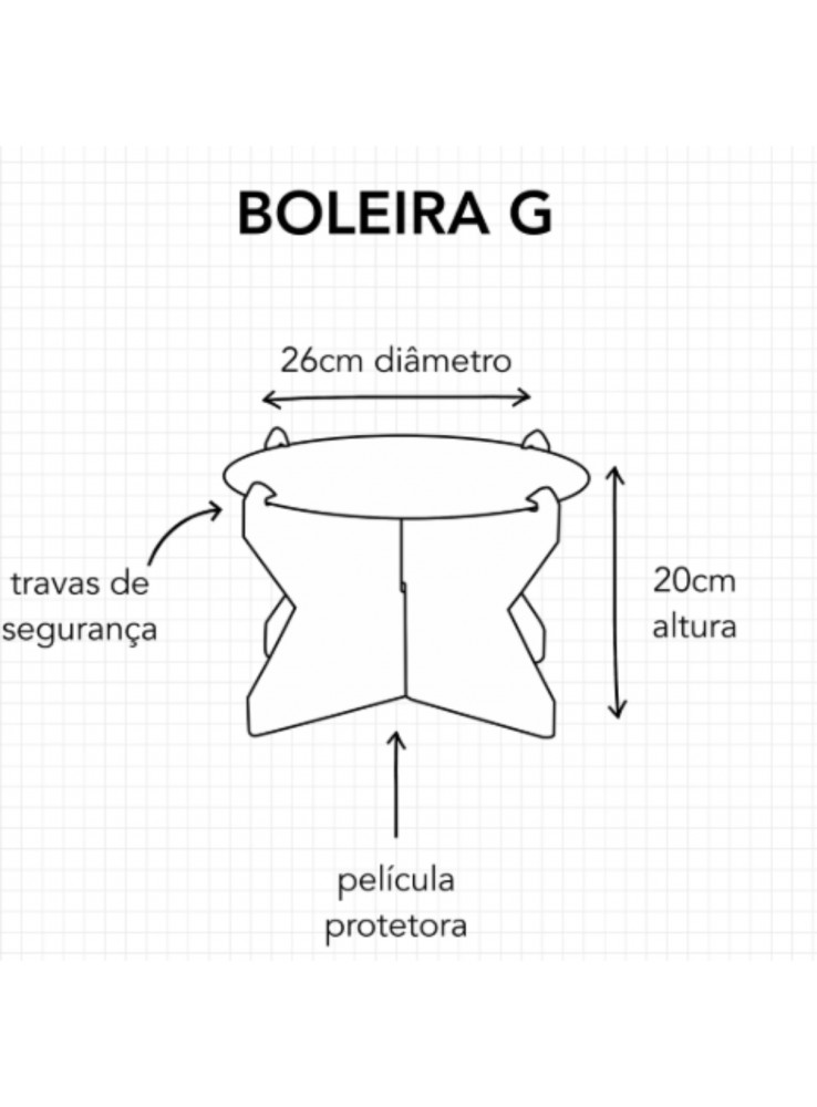 A Boleira mede 26cm de diâmetro x 20cm de altura.
