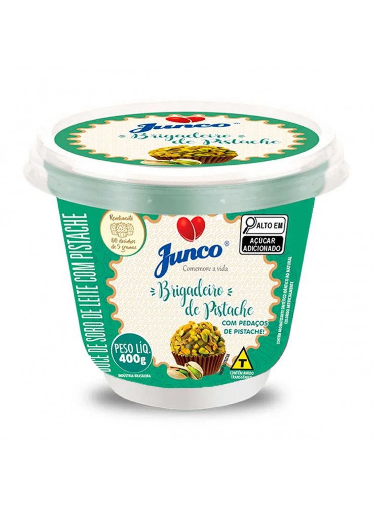 Ingredientes: Soro de leite refrigerado e/ou soro de leite em pó reconstituído, açúcar, leite fluído à granel de uso industrial e/ou leite em pó integral reconstituído, amido modificado, água, farinha de castanha de caju, pistache triturado, pasta de pistache, concentrado proteico de soro de leite em pó, espessante pectina (INS 440), aroma idêntico ao natural de leite, aroma idêntico ao natural de pistache, conservante sorbato de potássio (INS 202), estabilizante citrato de sódio (INS 331iii), corantes dióxido de titânio (INS 171), amarelo tartrazina (INS 102) e indigotina (INS 132). Não contém glúten. Contém lactose. Alérgicos: Contém leite e derivados, castanha de caju e pistache. Pode conter amendoim e avelã.