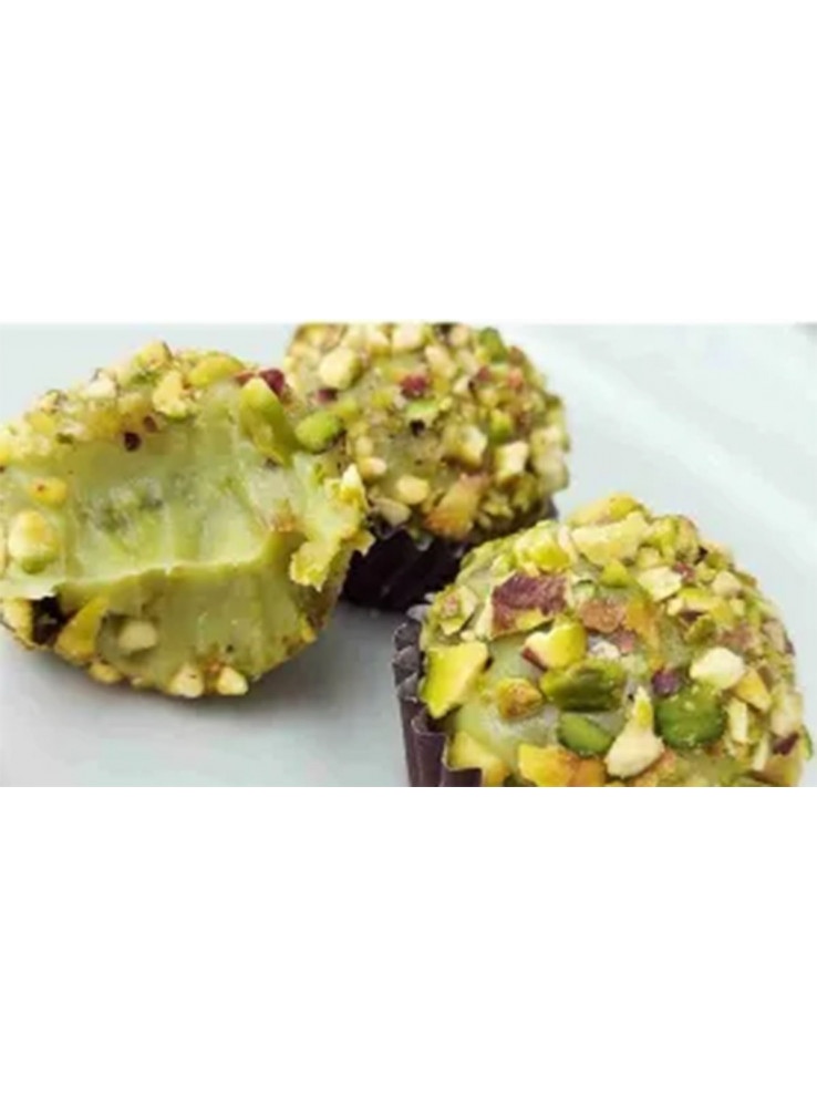 Brigadeiro de Pistache com Pedaços de Pistache dentro.