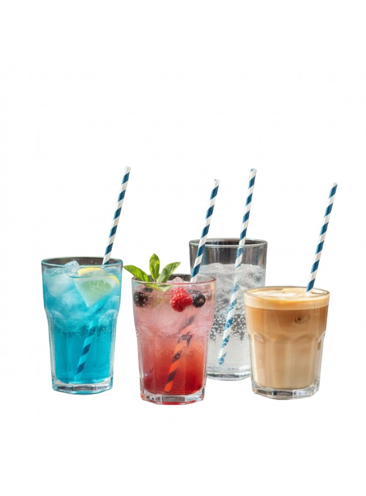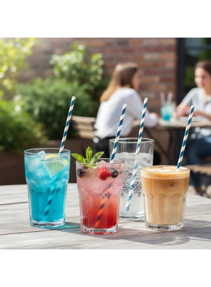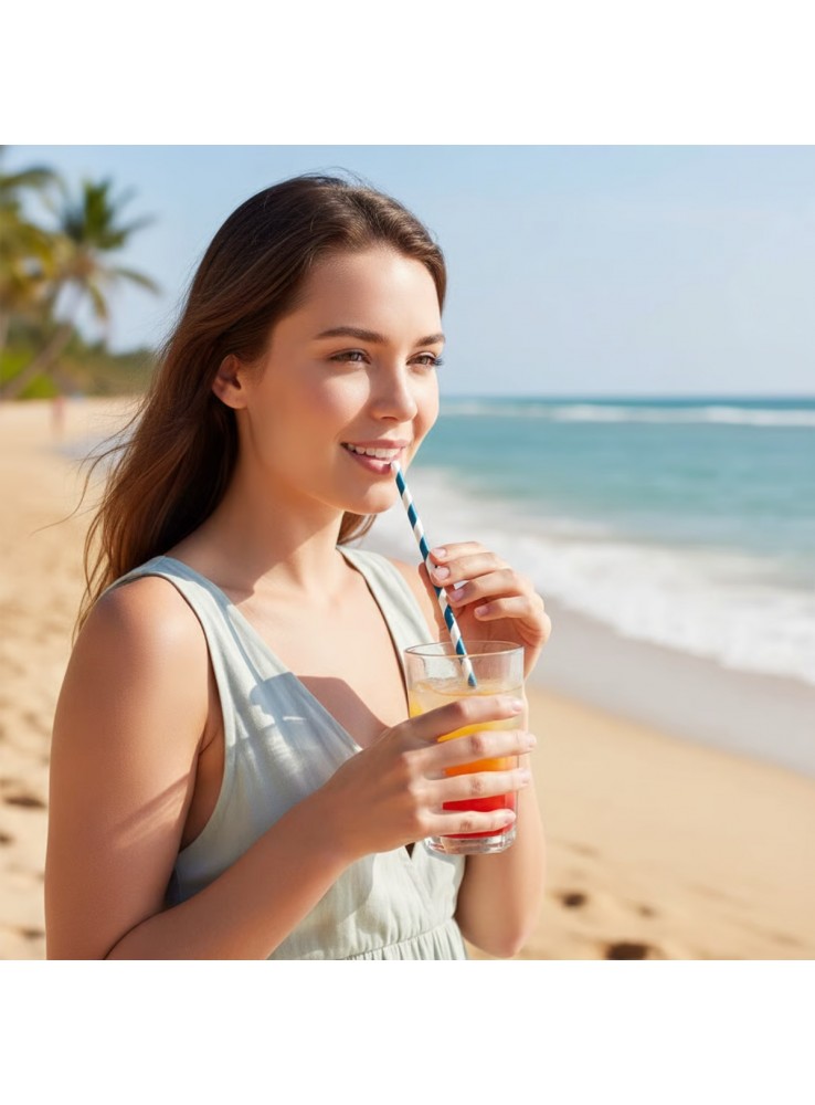 Canudos de Papel Listrados nos tons Azul e Branco.