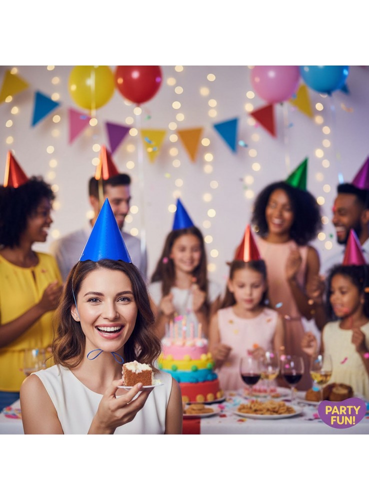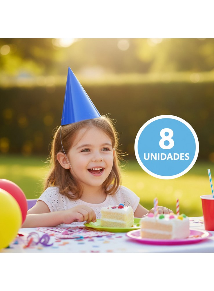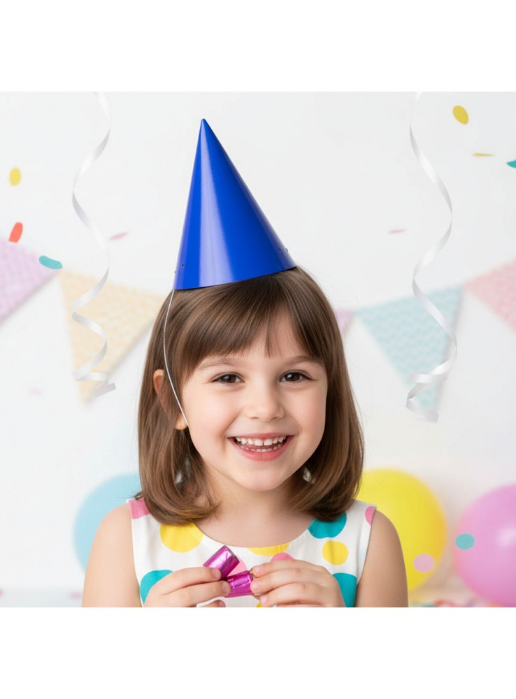 Chapéu de aniversário em papel cartonado ilustrado na cor Azul Escuro. A embalagem do chapéu de Aniversário Azul Escuro contém 08 unidades e é ideal para presentear os seus amigos e fazer da Hora do Parabéns um momento muito mais divertido.