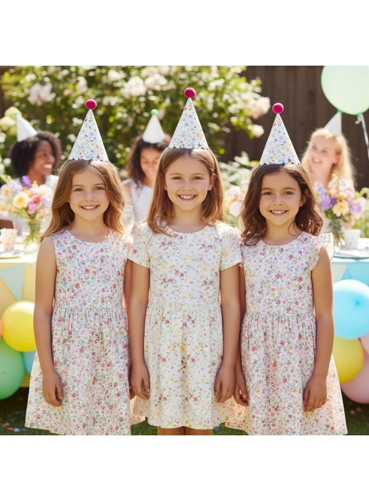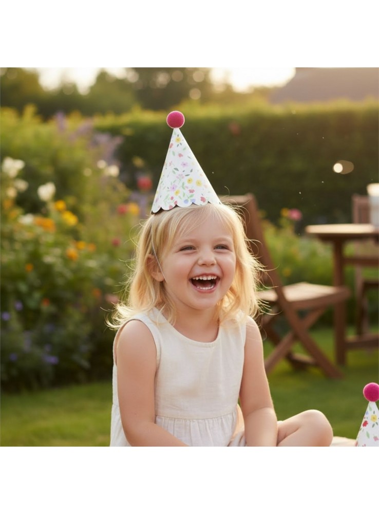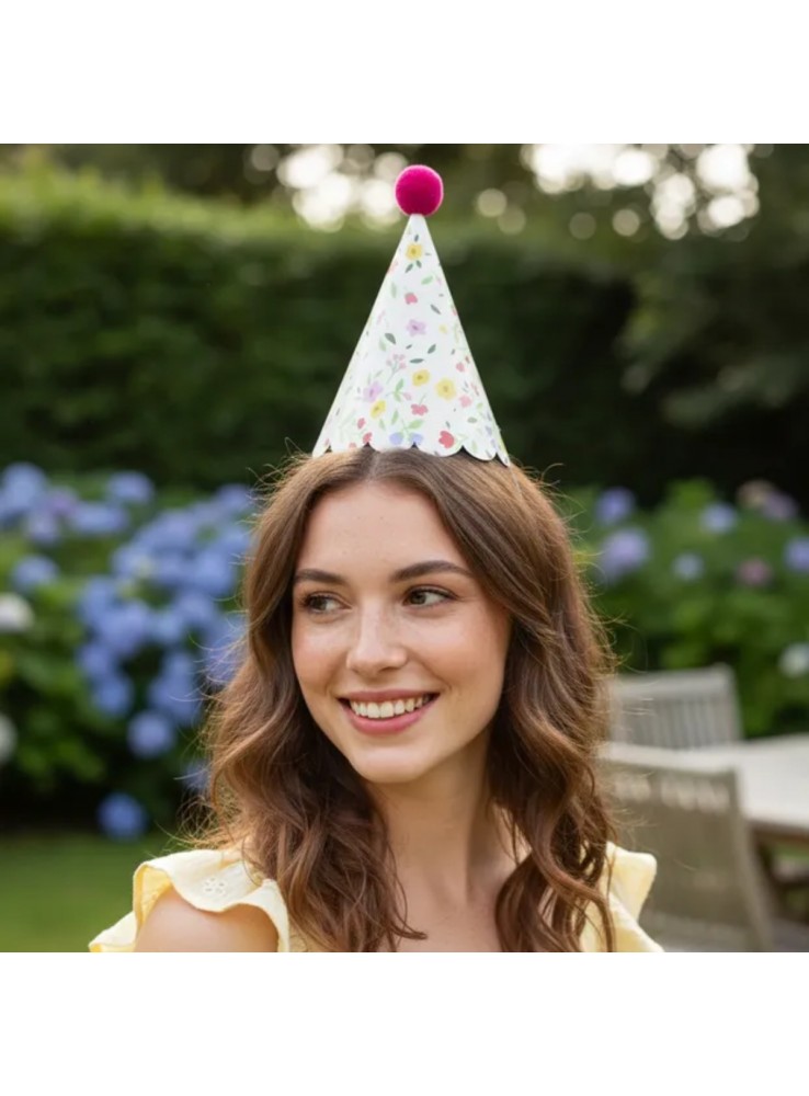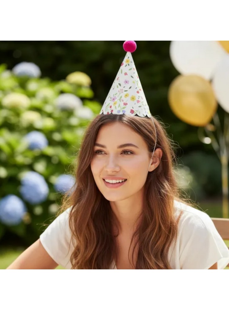 Chapéu de Aniversário Chapeuzinho na estampa Floral Vintage.