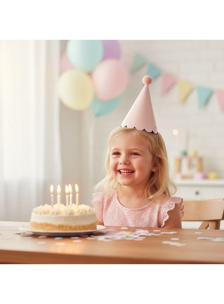 Chapéu de Aniversário Chapeuzinho na cor Rosa Blush.