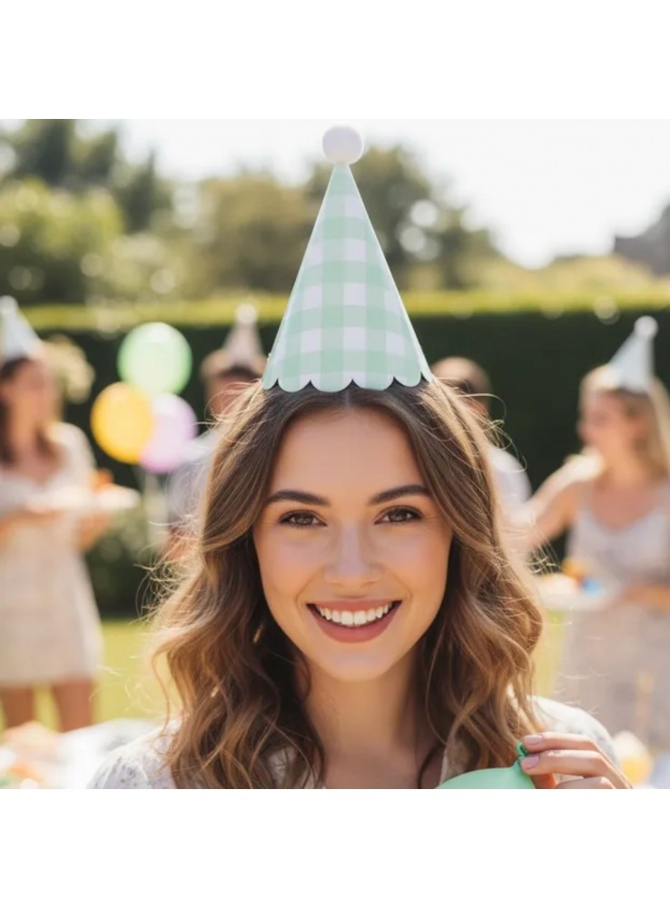 Chapéu de Aniversário Chapeuzinho na estampa Xadrez Verde Menta.