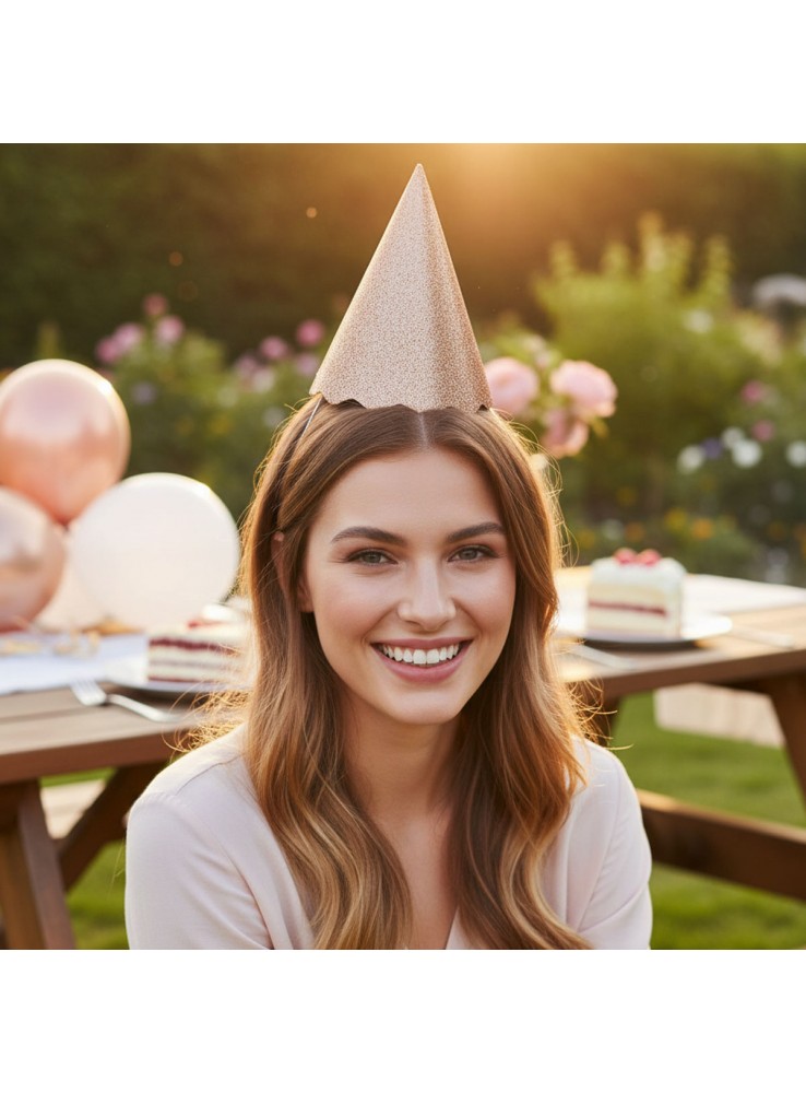 Chapéu para Aniversário na cor Rose Gold Metalizada com Glitter.