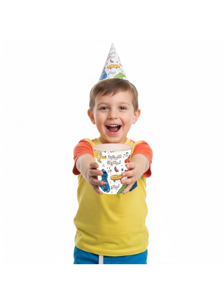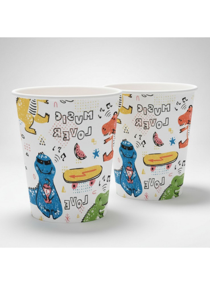 Copos de Papel com a estampa de Dinossauros Coloridos.