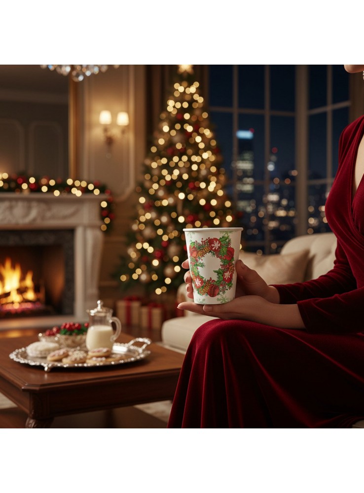 Copo de Papel com a estampa de uma Guirlanda de Natal.