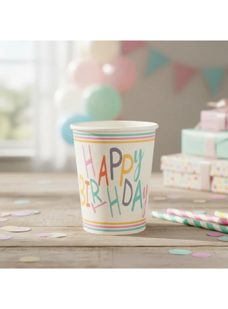 Copos de Papel com a estampa de Bolinhas Rosa e Verde.