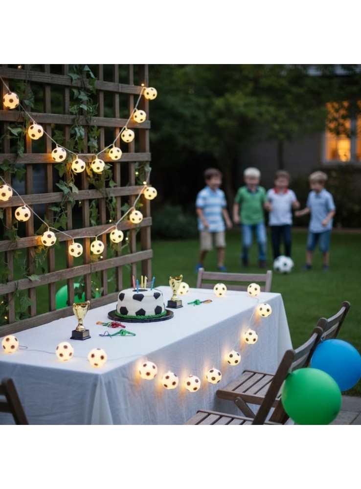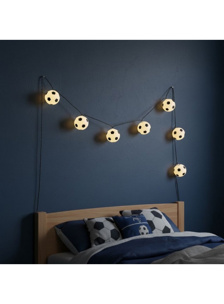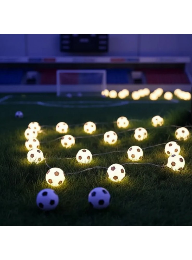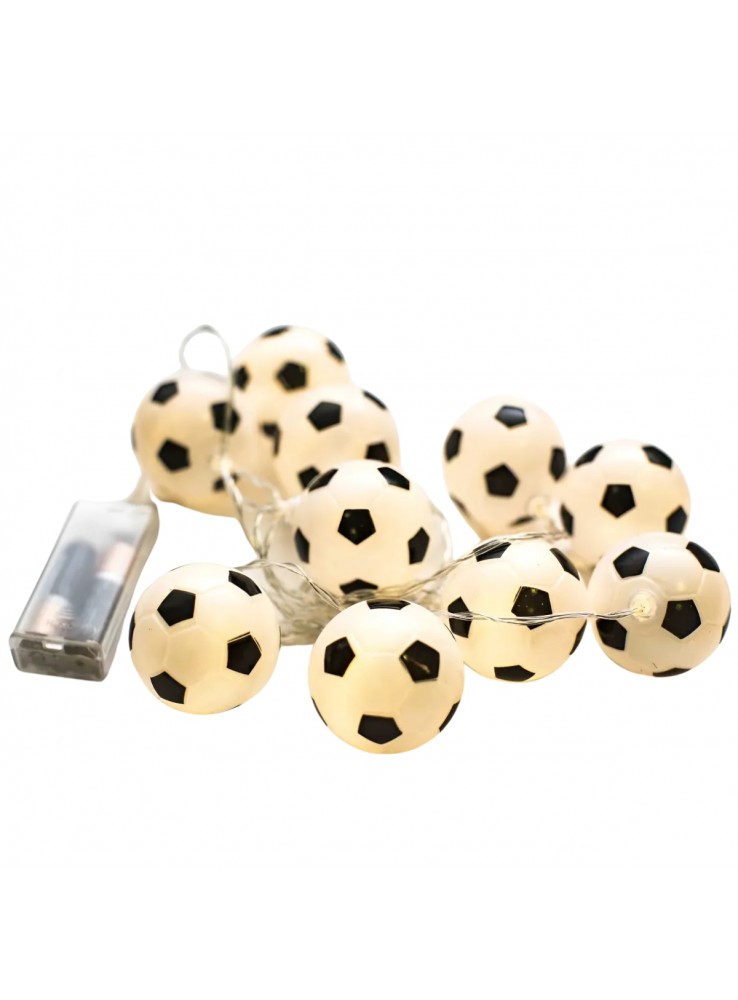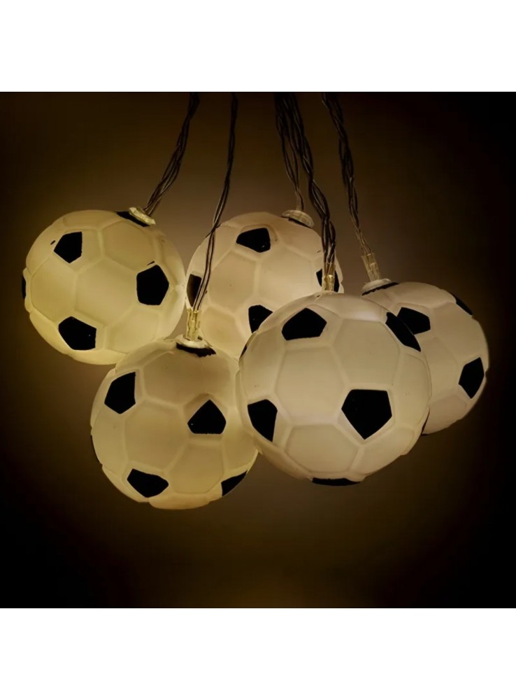 Cordão Luminoso de Led Bolas de Futebol com luz branco quente. (luz amarela)