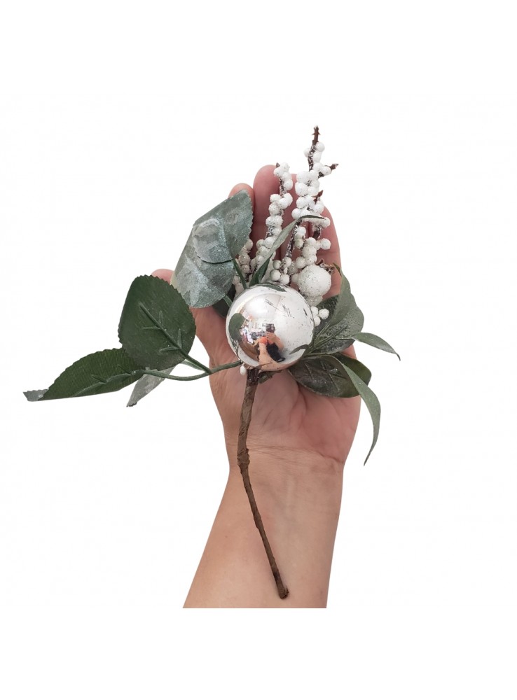 Enfeite de Natal em formato de Pick Natalino Ramo de Flor Artificial .