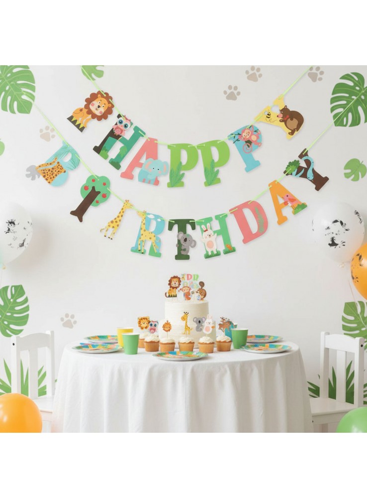 Faixa Decorativa Happy Birthday Aniversário Animais.
