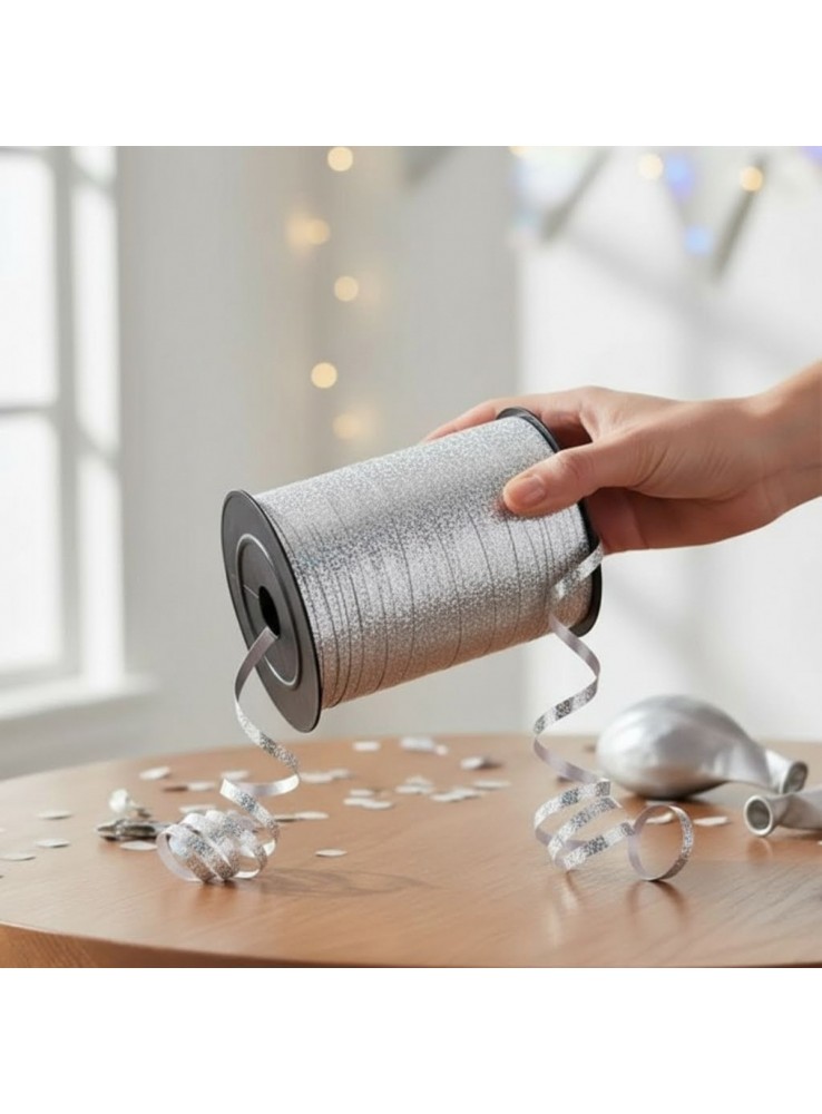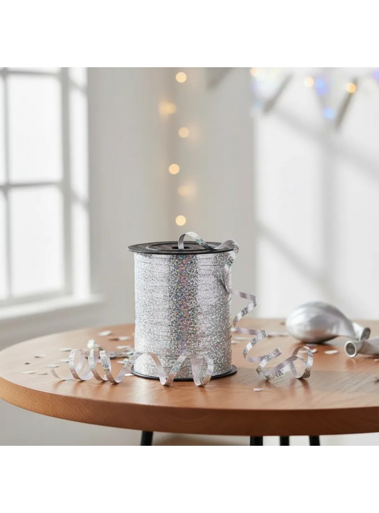 Fitilho de Plástico na cor Prata Holográfico.