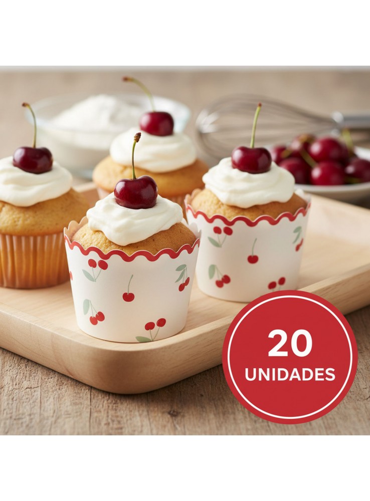 Forminhas para Cupcake Forneáveis na estampa Cerejas.