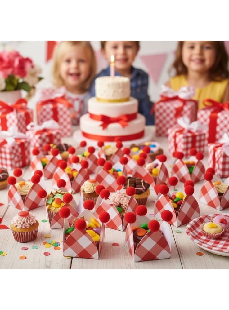 Forminhas para Doces na cor Xadrez Vermelho com Pompom.