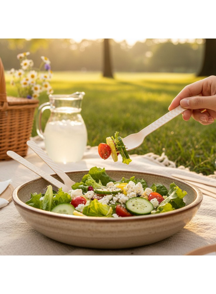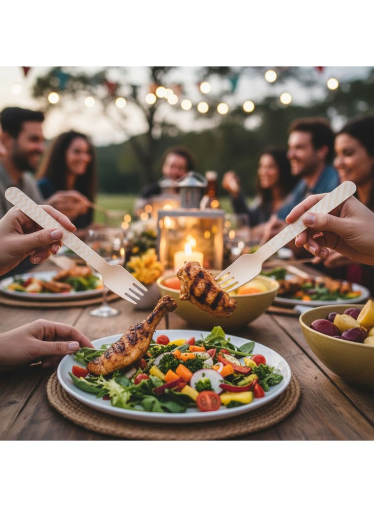 Garfos de Madeira Descartáveis de Festa com detalhes na cor Branca.