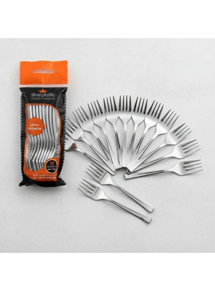 Garfos de Sobremesa no Tamanho Grande Descartáveis de Luxo na cor Prata - 10 unidades