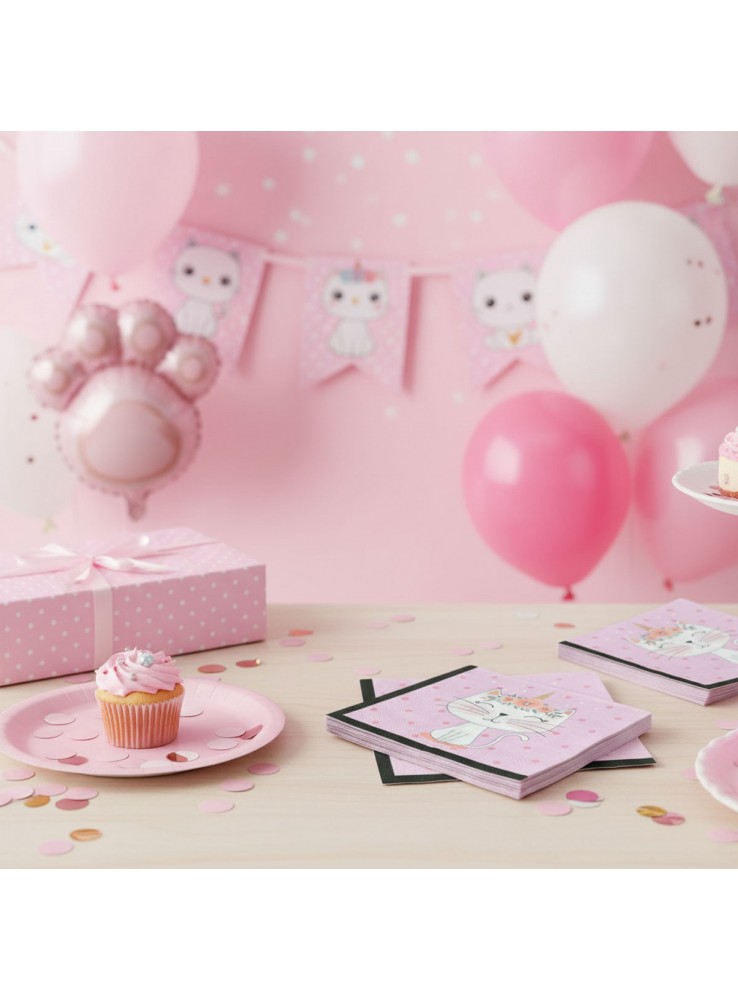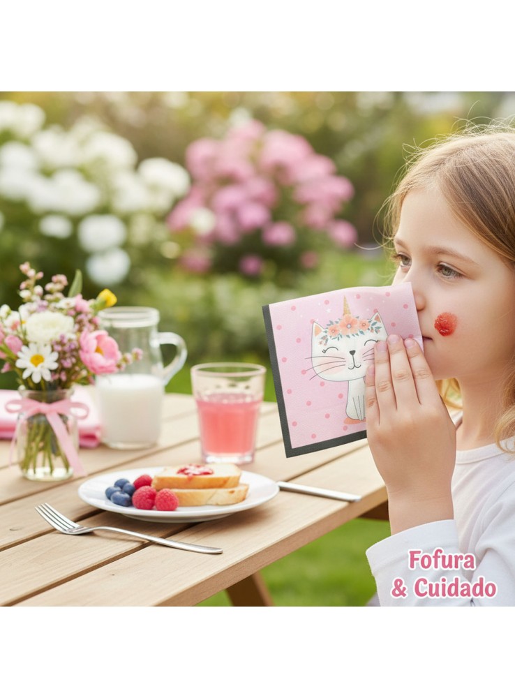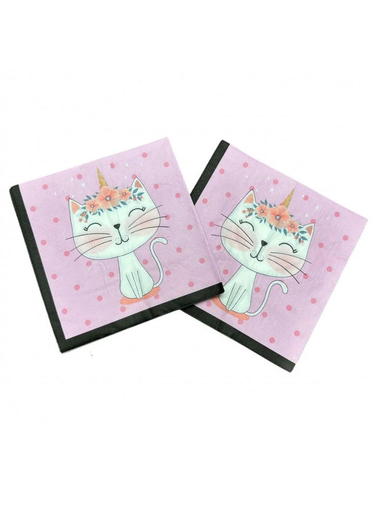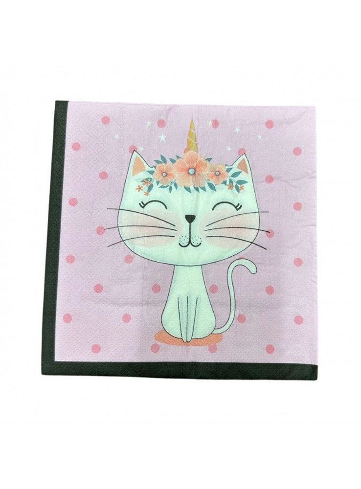 Guardanapo de Papel quadrado Rosa com a estampa de uma Gatinha Rosa.