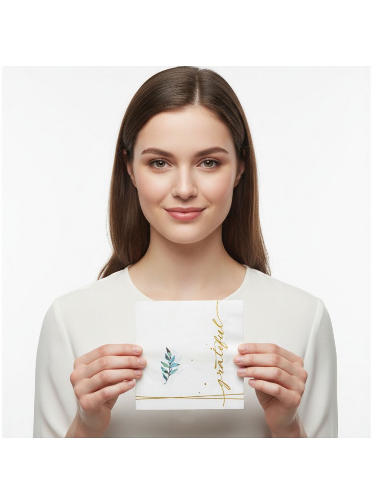 Guardanapo de Papel na cor Branca com Estampa de Gratidão.
