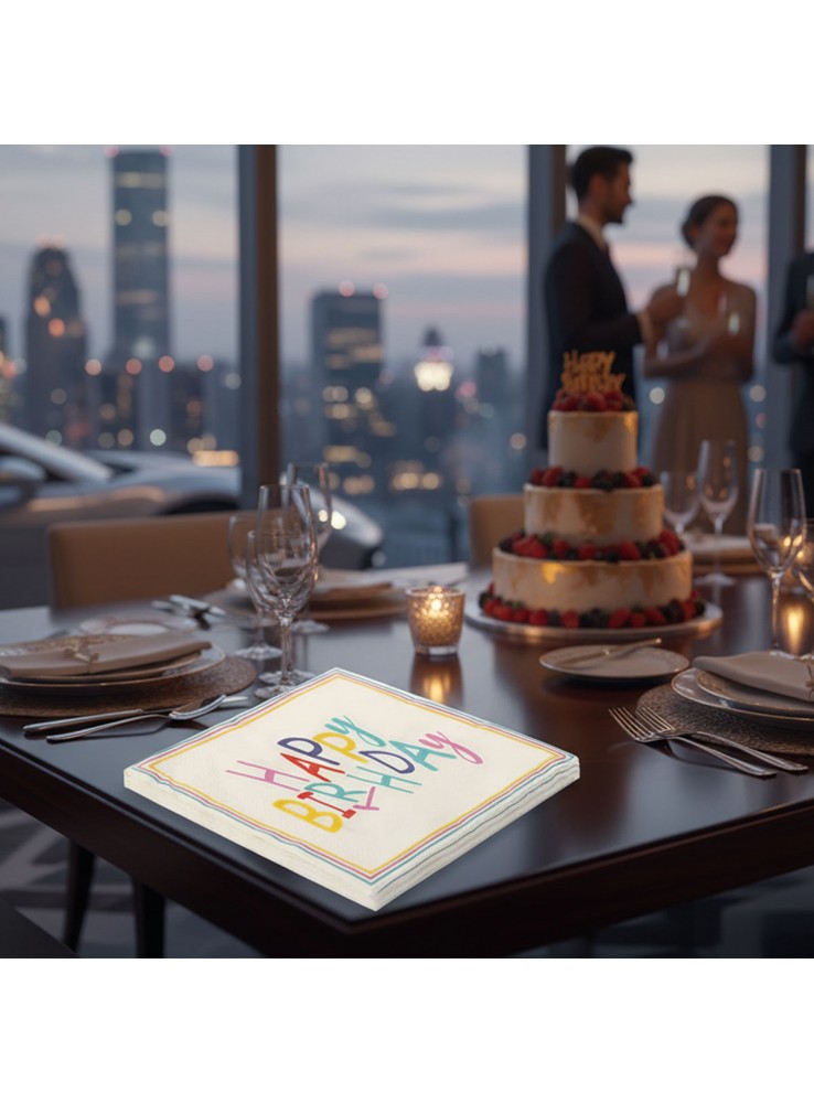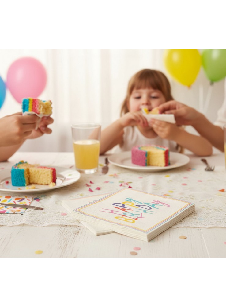 Guardanapo de Papel Luxo Folha Dupla com a estampa Happy Birthday Colorido.