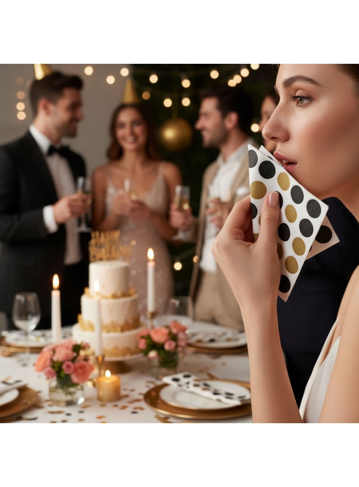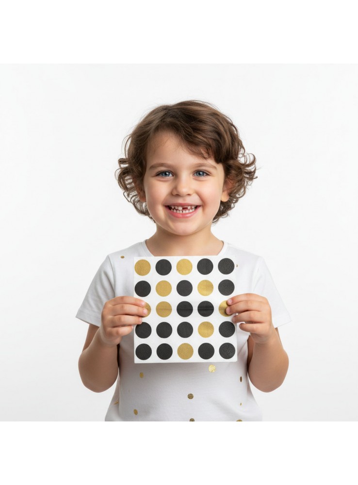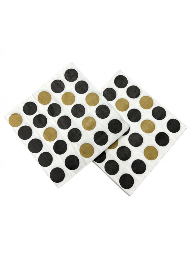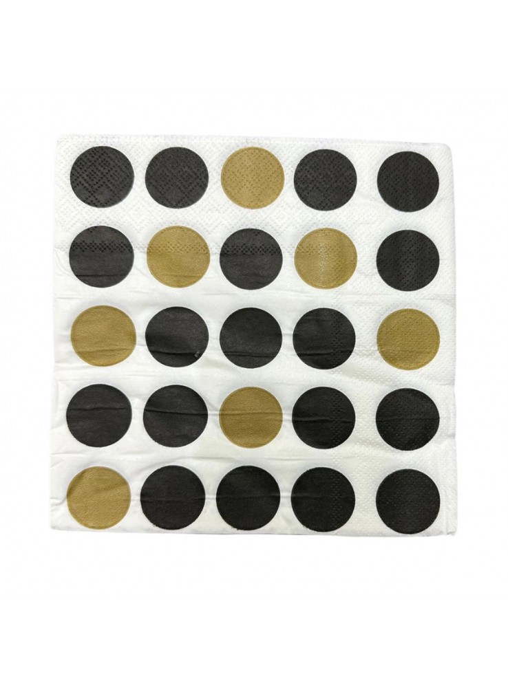 Guardanapo de Papel no formato quadrado com a estampa de Poá Grande nas cores Preto e Dourado.