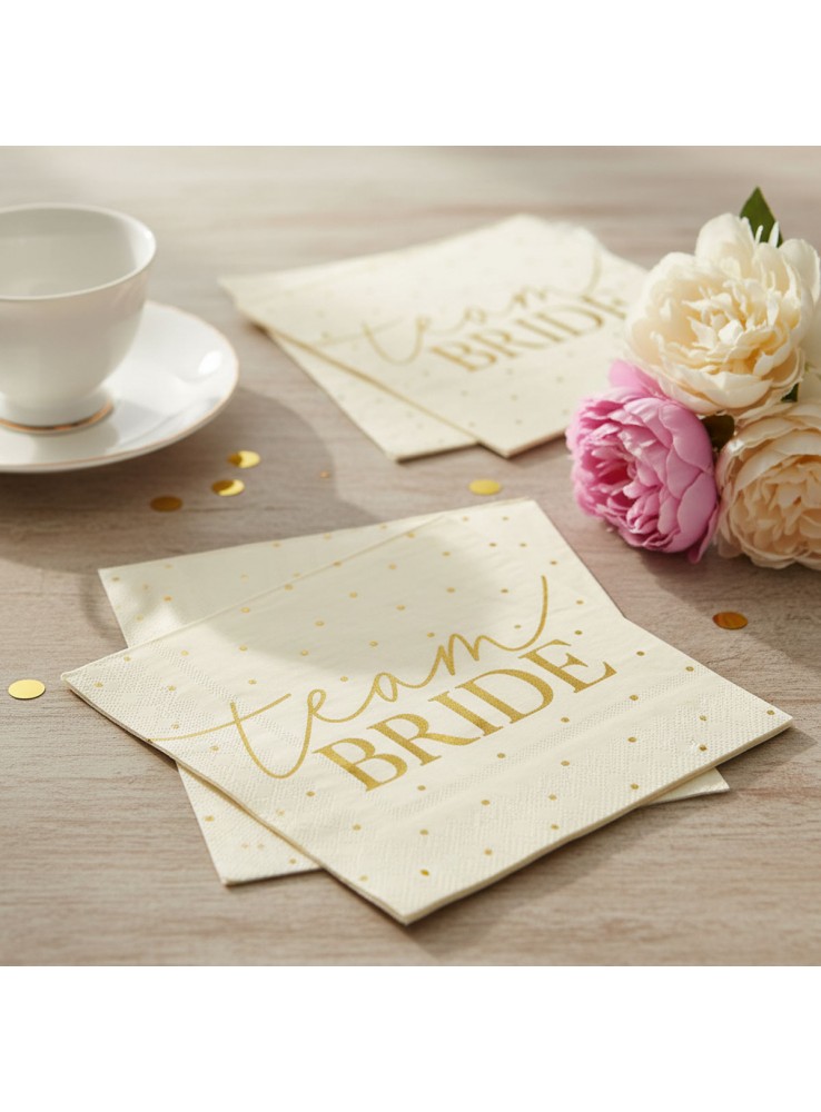 Guardanapo de Papel na cor Branca com a estampa Team Bride em Dourado Metalizado.