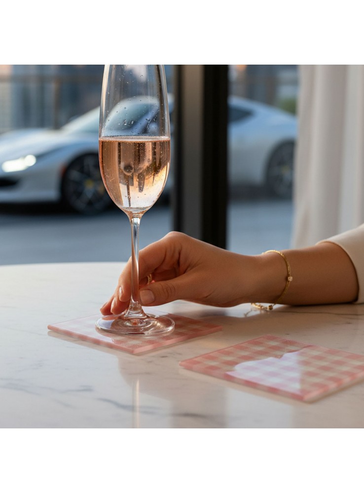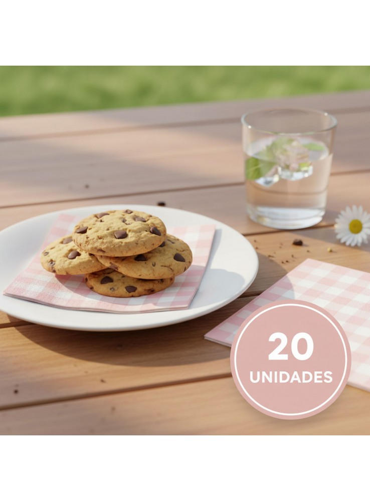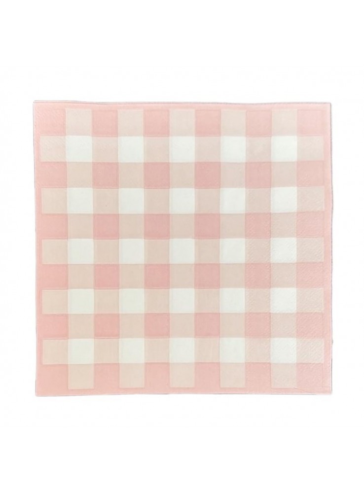 Guardanapo de Papel Quadrado na estampa Xadrez Vichy Rosa Claro.