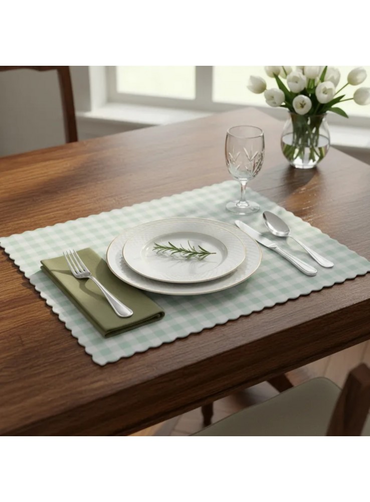 Jogo Americano Retangular na estampa Xadrez Verde Chá.