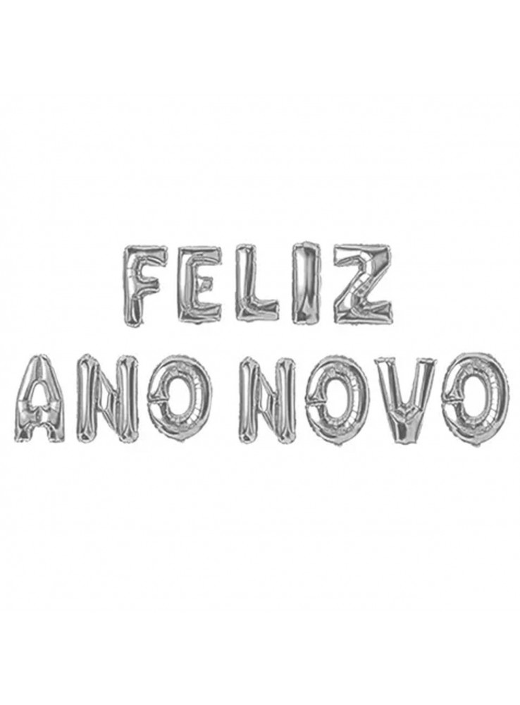 Kit de Balões Metalizados na frase Feliz Ano Novo na cor Prata.