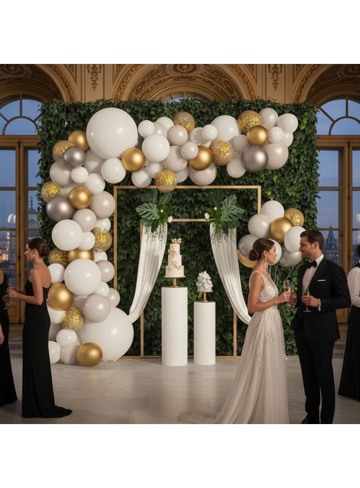 Kit Balões para Arco Descontruído nas cores Prata e Dourado.