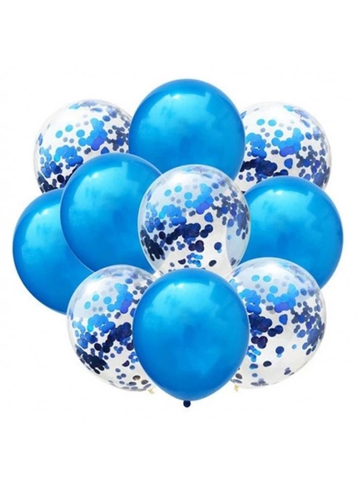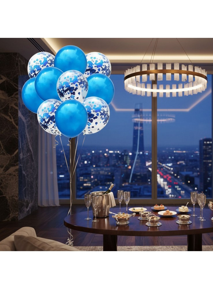 Kit Buquê de Balões de Látex na cor Azul e Transparente com Confetes Azul.
