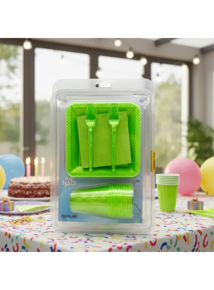 Kit Festa 10 Pessoas Descartáveis na cor Verde Neon.