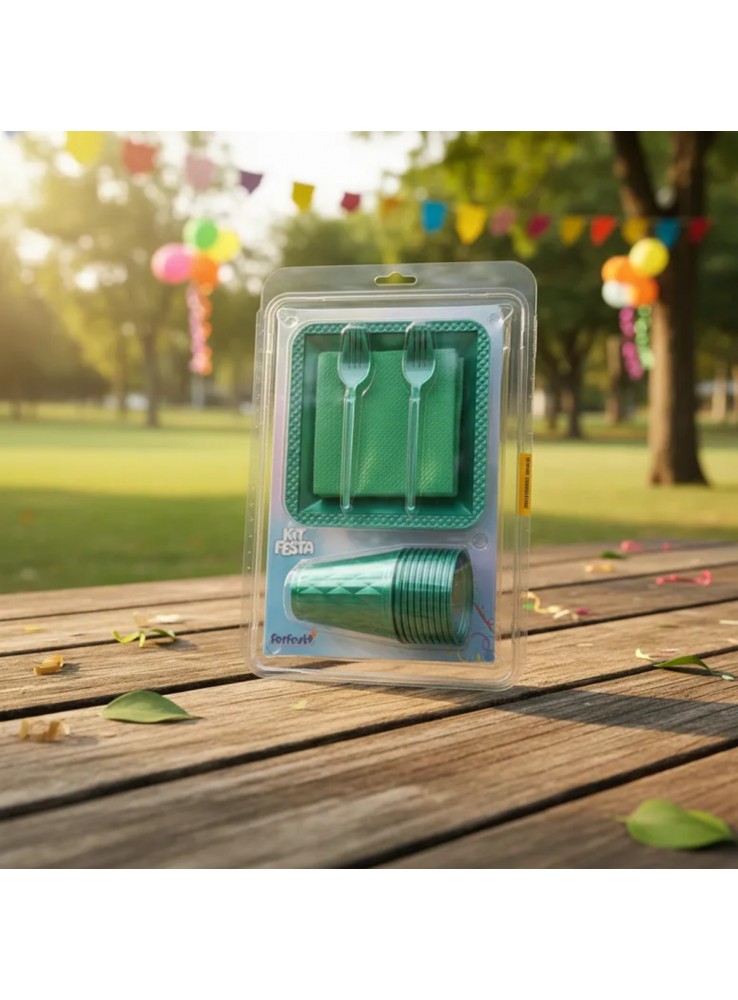 Kit Festa 10 Pessoas Descartáveis na cor Verde Perolado.