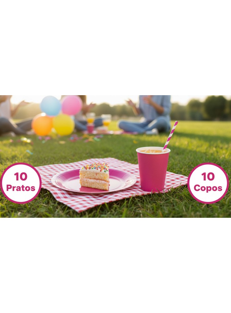 Embalagem com 10 Pratos de Papel e 10 Copos de Papel.