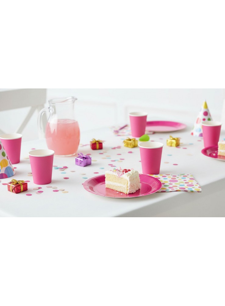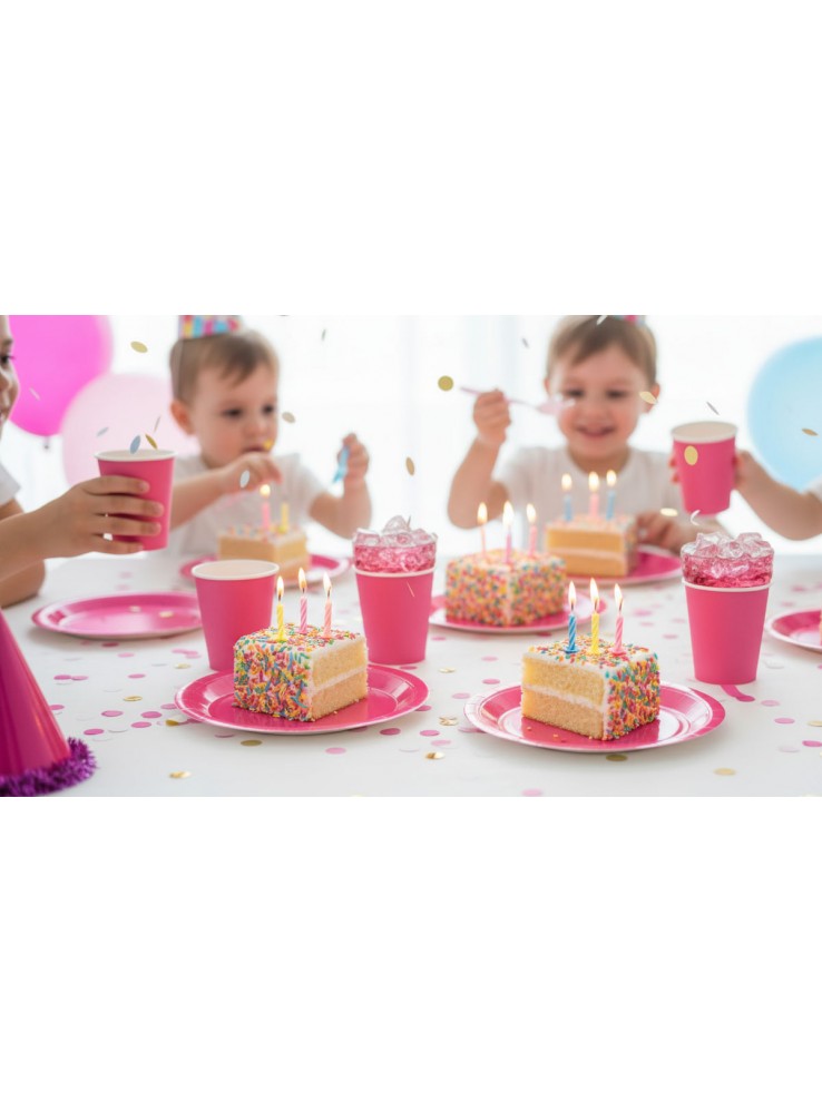 Pratos e Copos Descartáveis de Festa de Papel na cor Rosa Pink.
