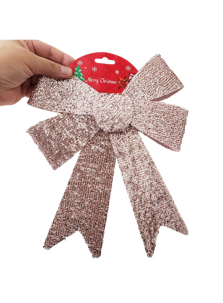 Laço de Natal com Glitter na cor Rose Gold.
