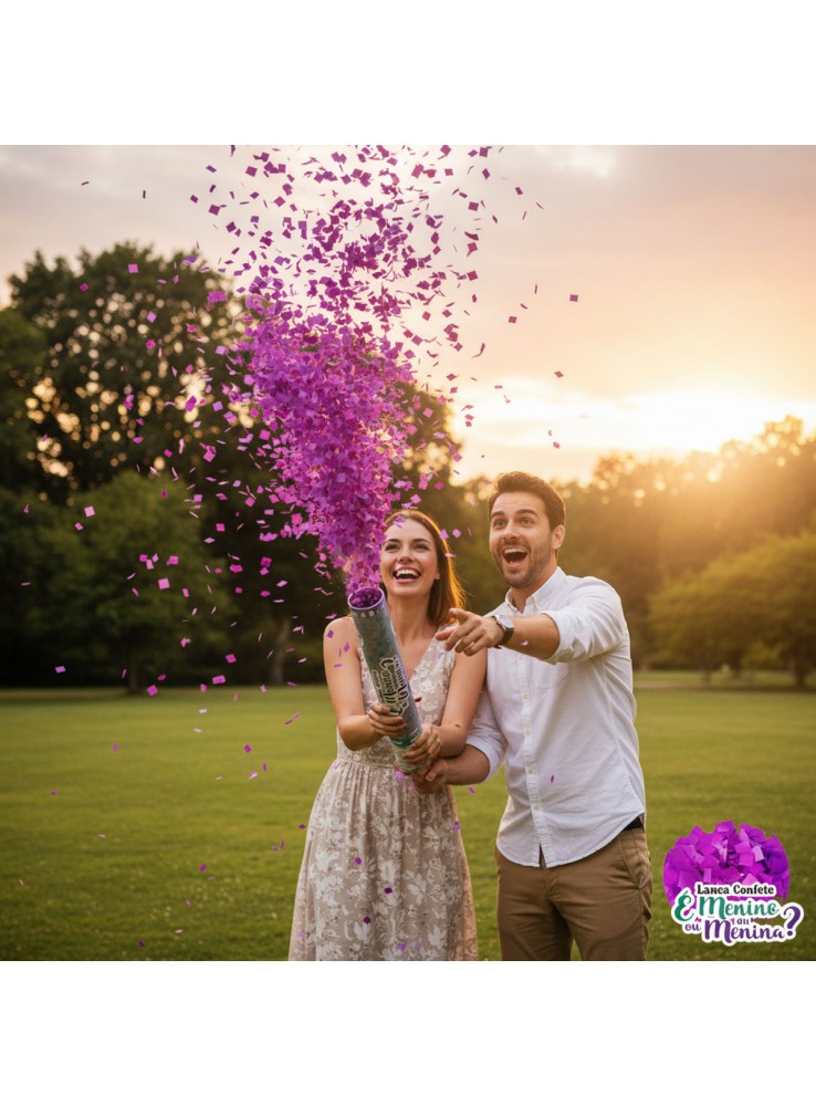 Bastão Lança Confetes Chá Revelação na cor Roxa.