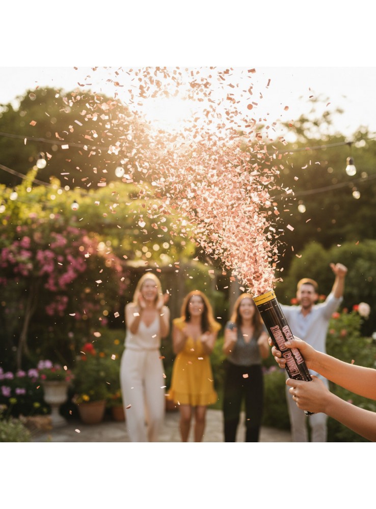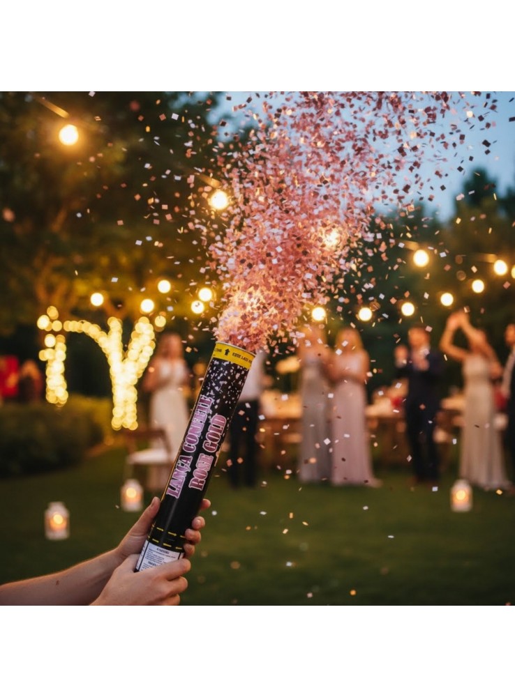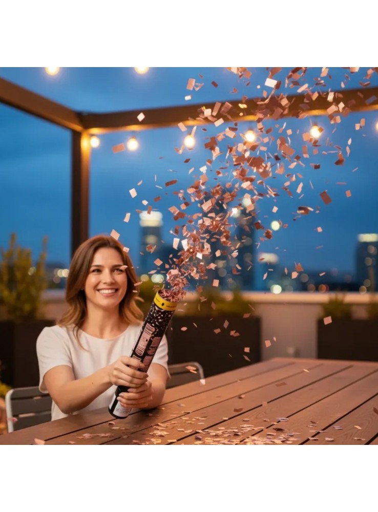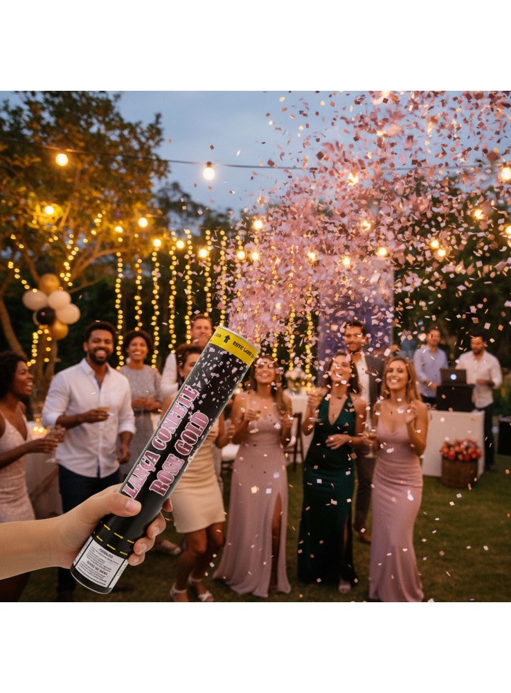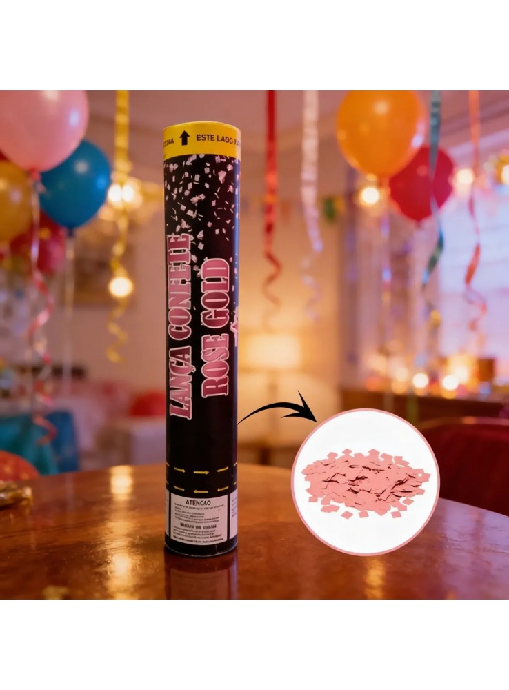 Lança Confetes Metalizados na cor Rose Gold.