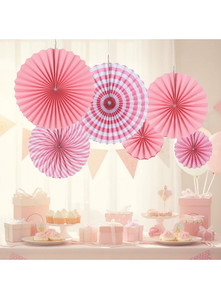 Leque de Papel Decorativo Colorido em tons de Rosa Claro.