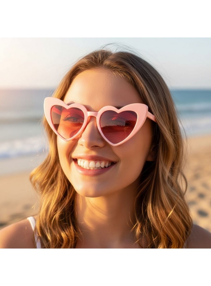 Óculos de Coração no modelo Gatinho na cor Rosa Claro.