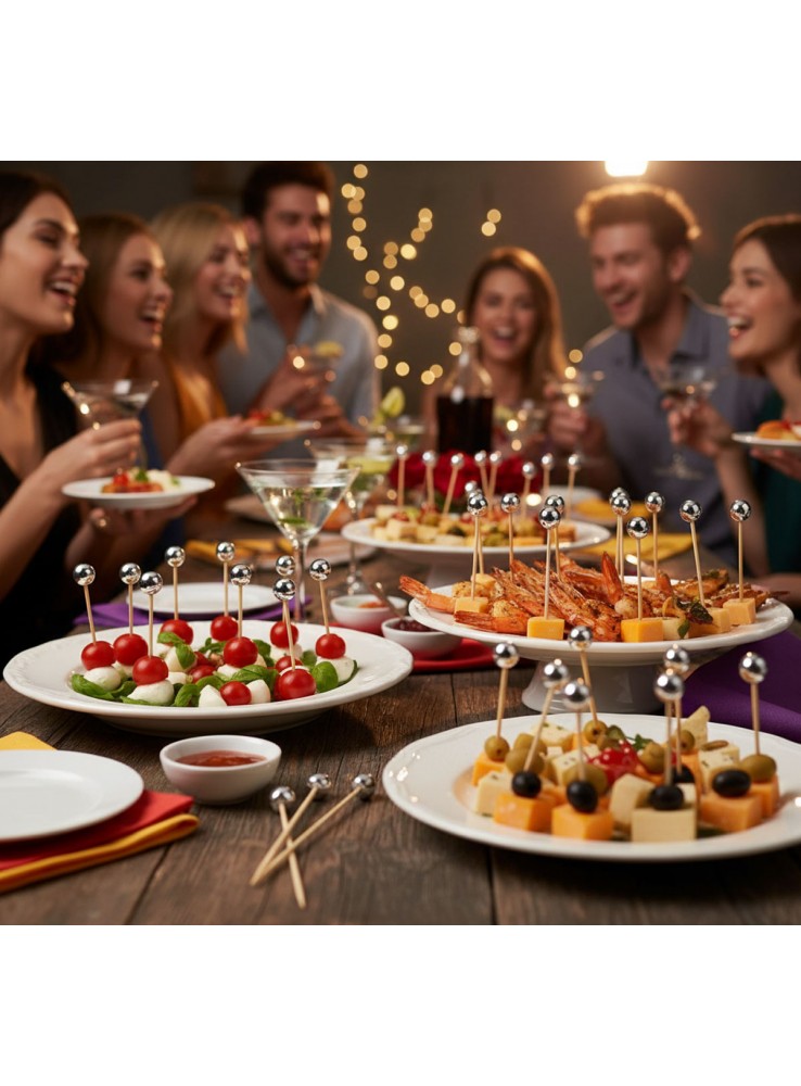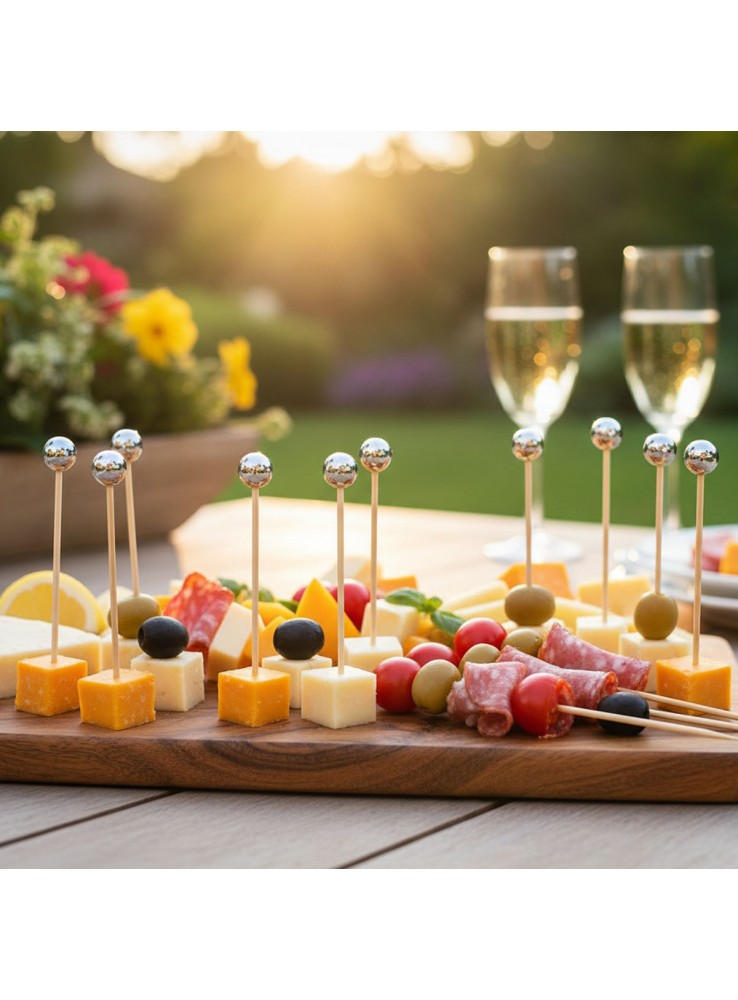Palitos de Bambu para Petiscos com Bolinhas na cor Prata.