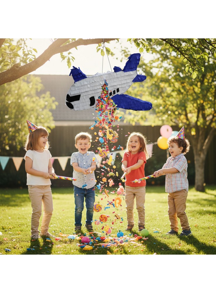 A Pinhata Avião suporta 3kg de doces, brinquedos, confetes.