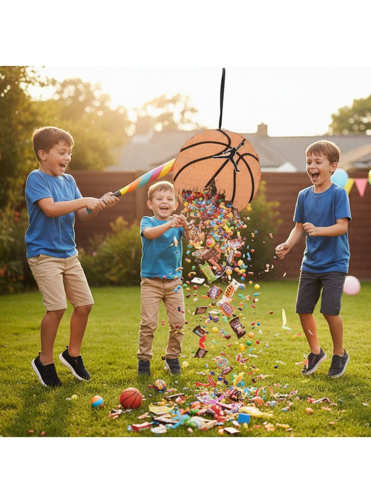 A Pinhata Bola de Basquete suporta 3kg de doces, brinquedos, confetes.