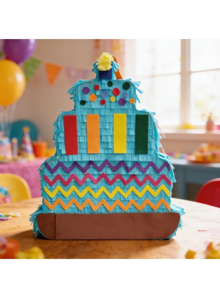 A Pinhata Bolo de Aniversário suporta 3kg de doces, brinquedos, confetes.