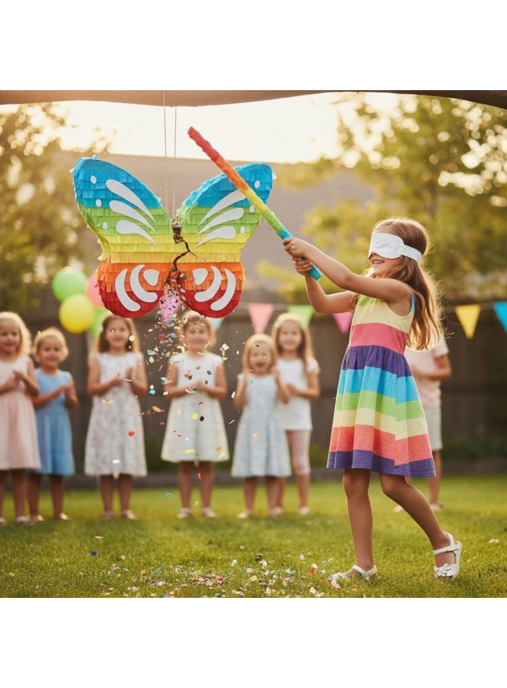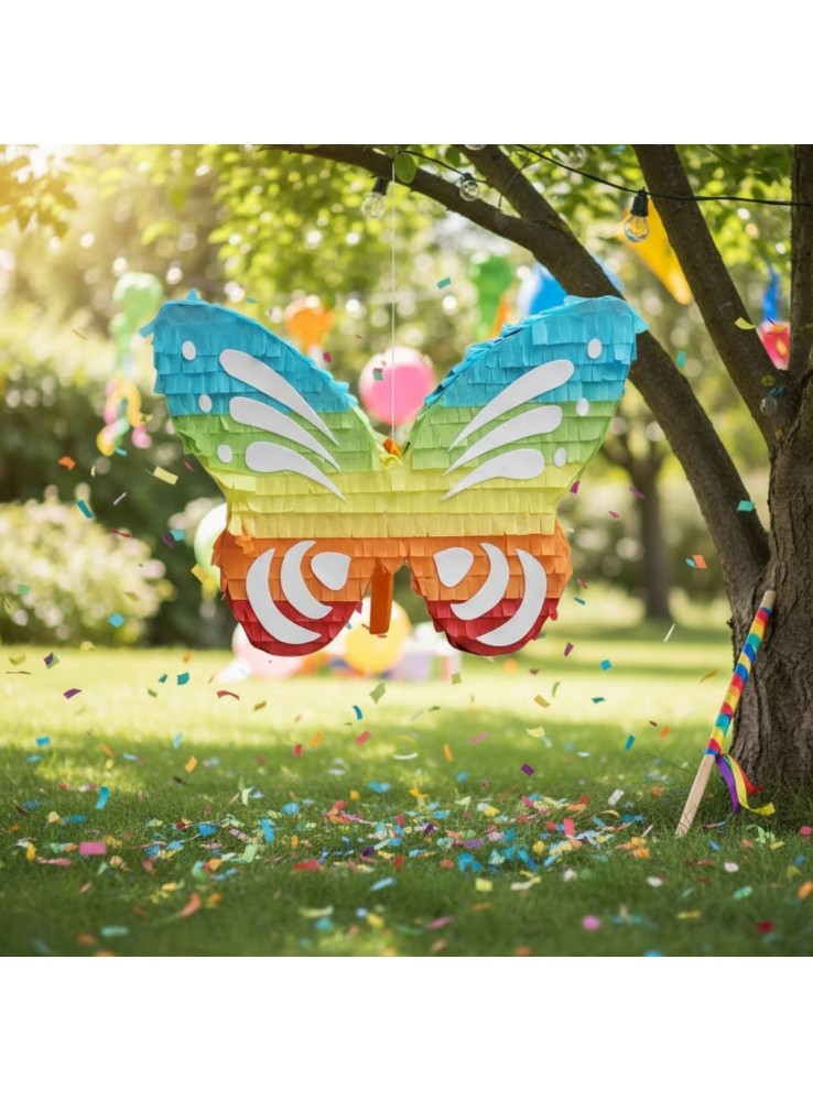 A Pinhata Borboleta Colorida suporta 3kg de doces, brinquedos, confetes.